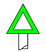 ![]() Stange mit Toppzeichen: Toppzeichen: quadratische Tafeln (die Diagonalen waagerecht und senkrecht), deren obere Hälfte grün und deren untere Hälfte weiss ist. Kann bei Nacht mit grünem Taktfeuer beleuchtet sein. |