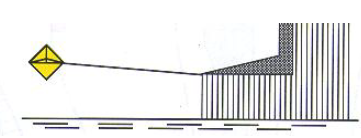 ![]() Gefahrenzeichen: Als Hilfszeichen zur Bezeichnung verschiedener, ins Flussbett hineinragender Bauten (z.B.) Buhnen, Leitwerke); sie können auch bei Hochwasser überströmte, vorspringende Punkte bezeichnen. |