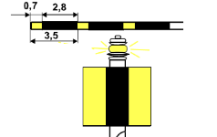 ![]() A) Radarreflektoren werden nebeneinander an einer Freileitung (50m Abstand) befestigt. Auf dem Radarbild ergeben sie eine Punktreihe (Perlenkette) zur Erkennung der Freileitung. |
